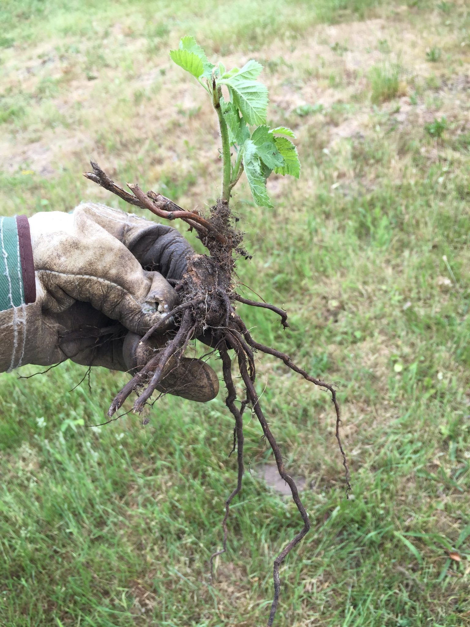 Zu diesem Zeitpunkt kannten wir aber noch nicht die Geheimwaffe der Brombeere: Die dicken Wurzelknoten und ihre Fähigkeit aus diesen alleine lange Zeit zu überleben und immer wieder neue Triebe zu bilden.